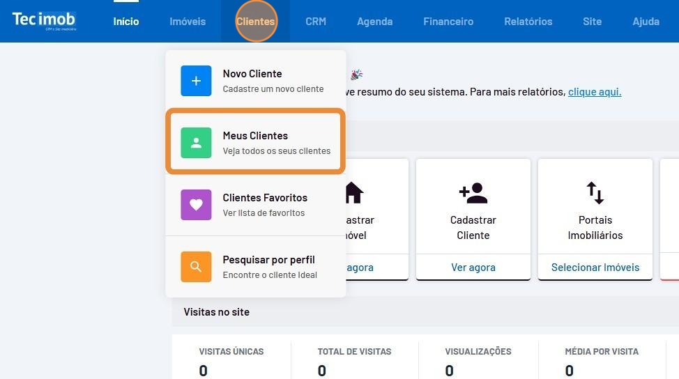 - Passe o mouse sobre o menu "Clientes" e clique em "Meus Clientes".
