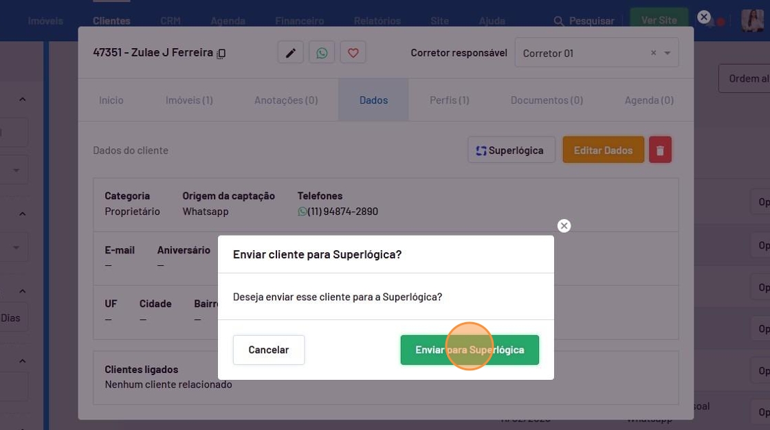 - Após selecionar como deseja enviar, clique em "Enviar para Superlógica".