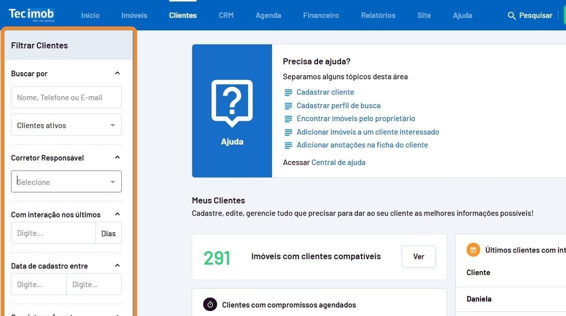- Utilize o filtro no menu do canto esquerdo da página para localiza o cliente.