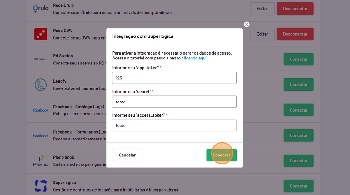 - As informações para preencher a seguir serão disponibilizadas pela equipe da Superlógica, conforme tutorial: