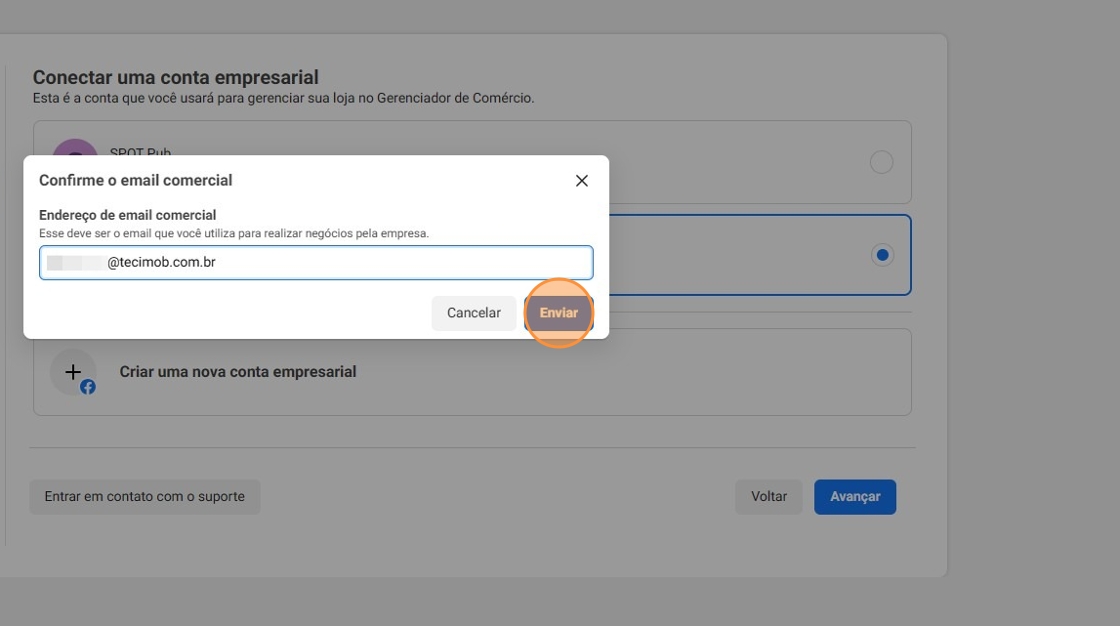 - Selecione uma conta empresarial já existente ou crie uma nova.