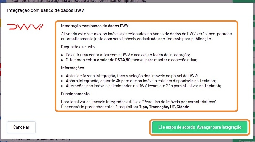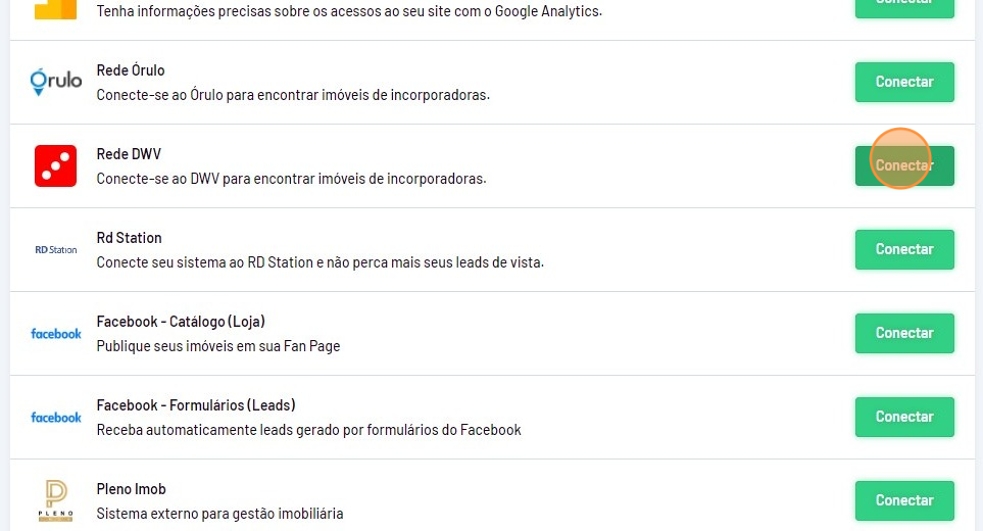 Para integrar com a Rede DWV no sistema do Tecimob, siga estes passos: