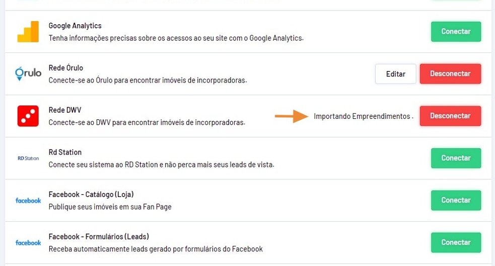 - Após conectar, aguarde a importação dos imóveis. O prazo de carga dos imóveis é de até 24h, e para as atualizações posteriores também terão o prazo de 24h.