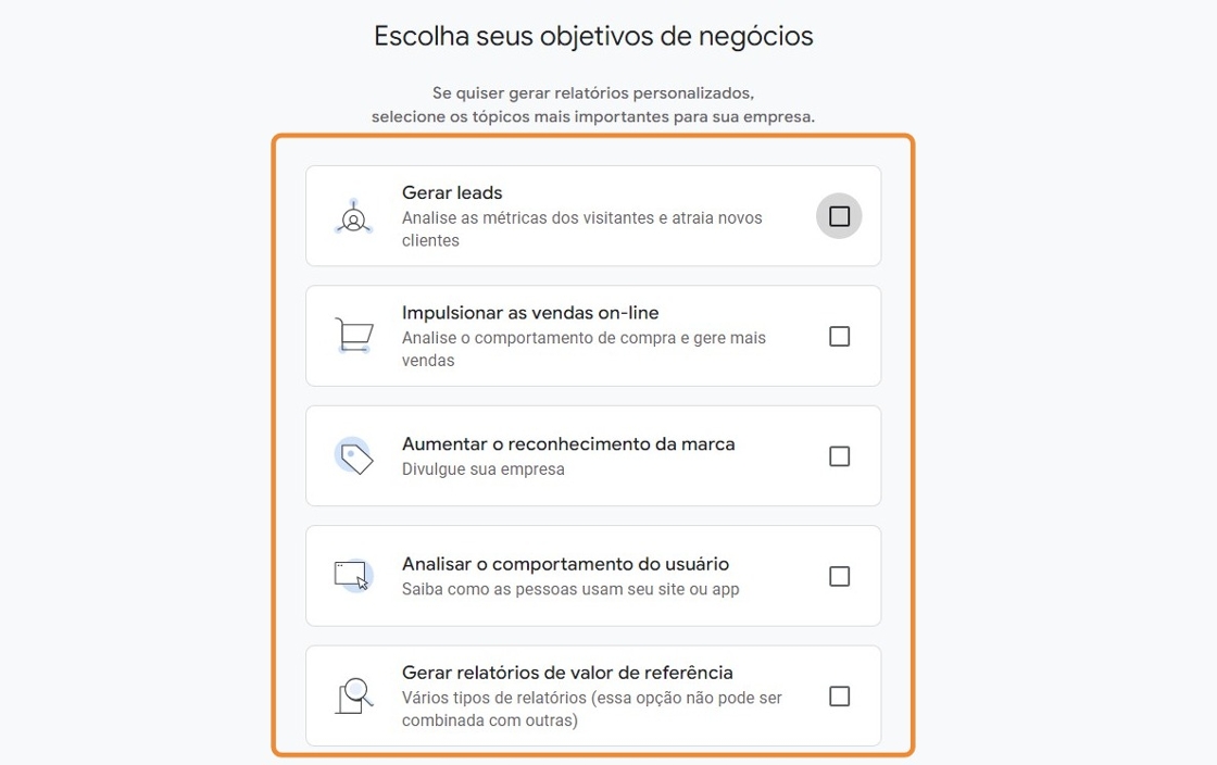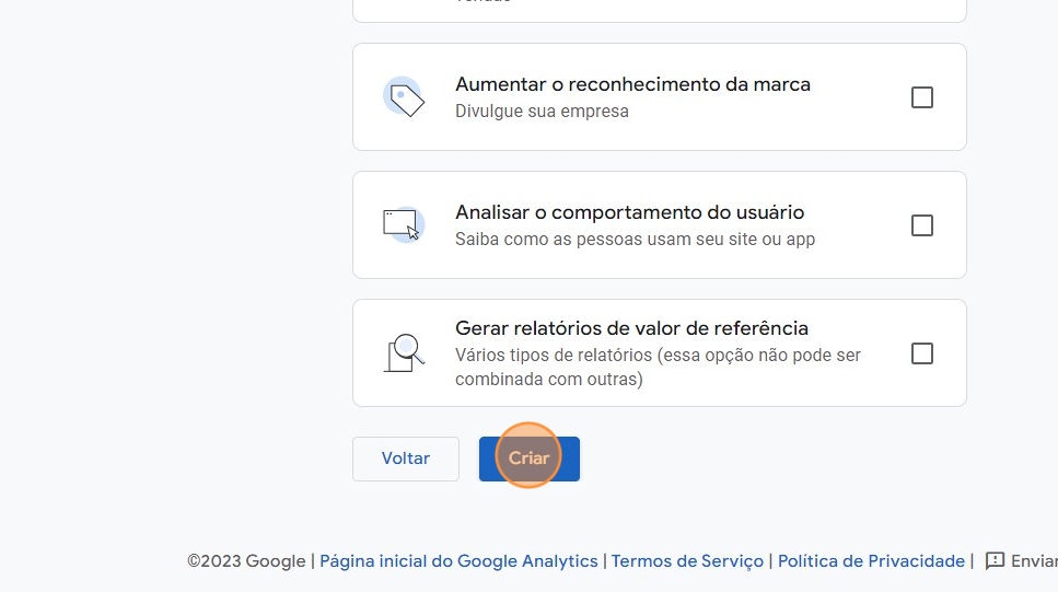 Para criar uma conta no Google Anaytics G14, siga estes passos: