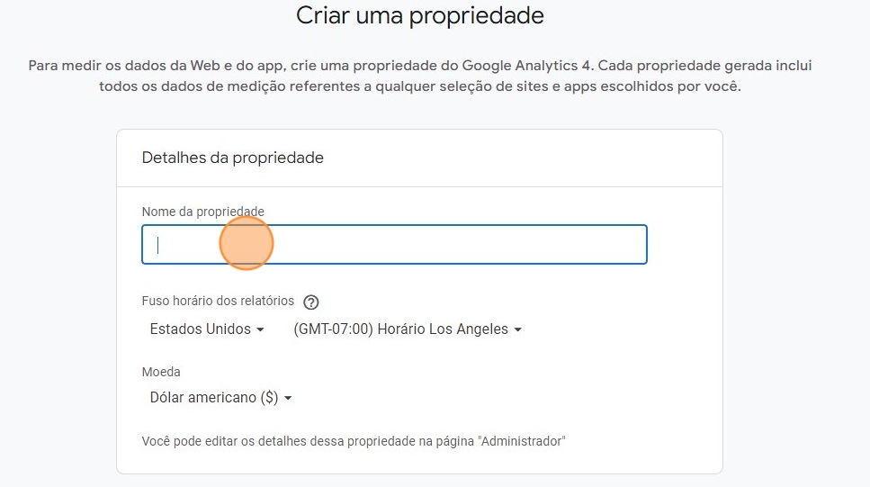 - Informe o nome da propriedade, que é basicamente o Nome da Imobiliária ou seu nome como corretor.