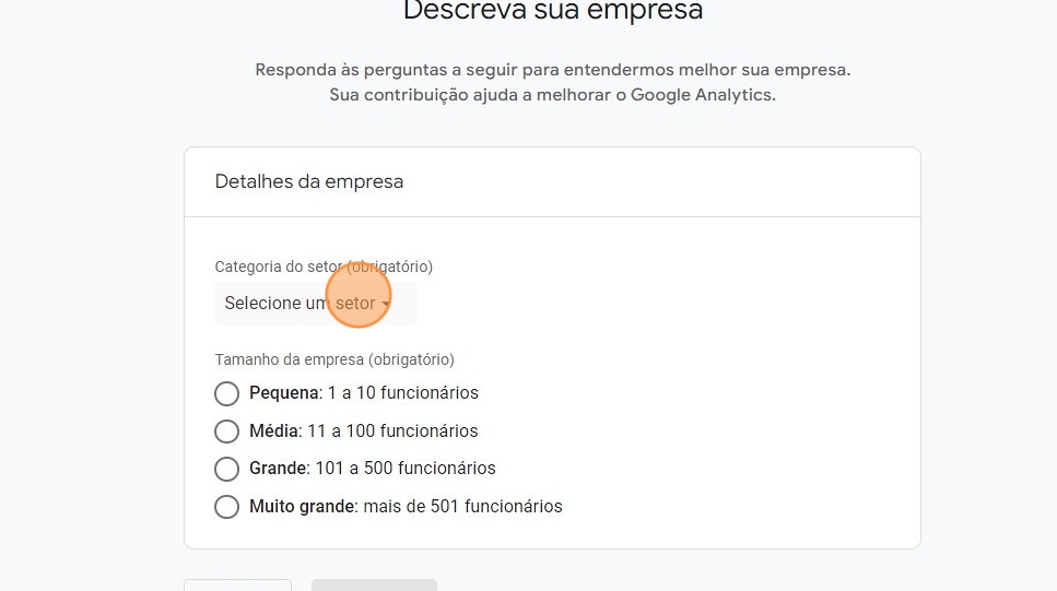 - Selecione o tamanho da empresa e clique em "Próximo".