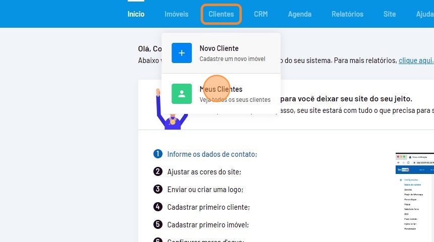 - Passe o mouse sobre o menu "Clientes" e clique em "Meus Clientes".