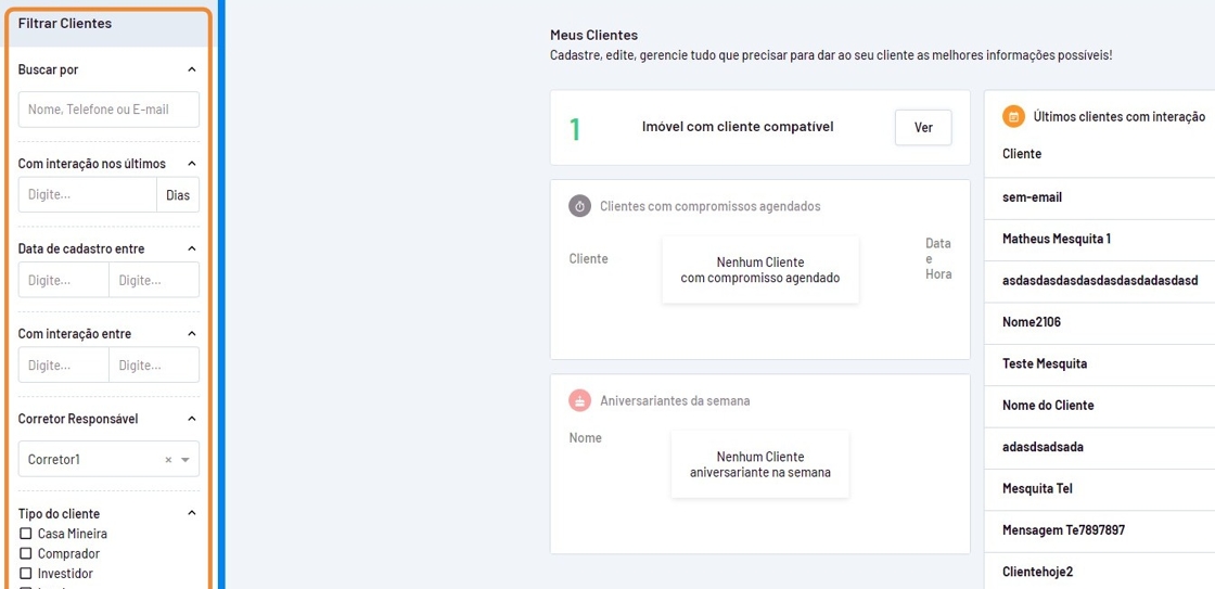 - Utilize o filtro no menu do canto esquerdo da página para localiza o cliente.