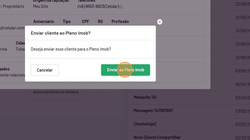 - Para confirmar, clique em "Enviar ao Pleno Imob".