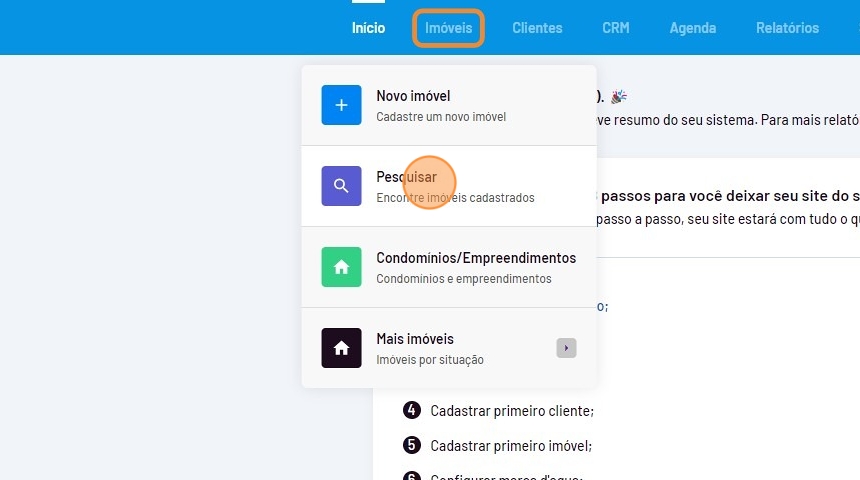 - Passe o mouse sobre o menu "Imóveis" e clique em "Pesquisar".