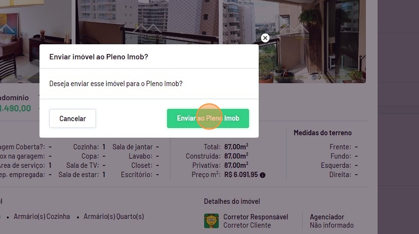 - Para confirmar, clique em "Enviar ao Pleno Imob".