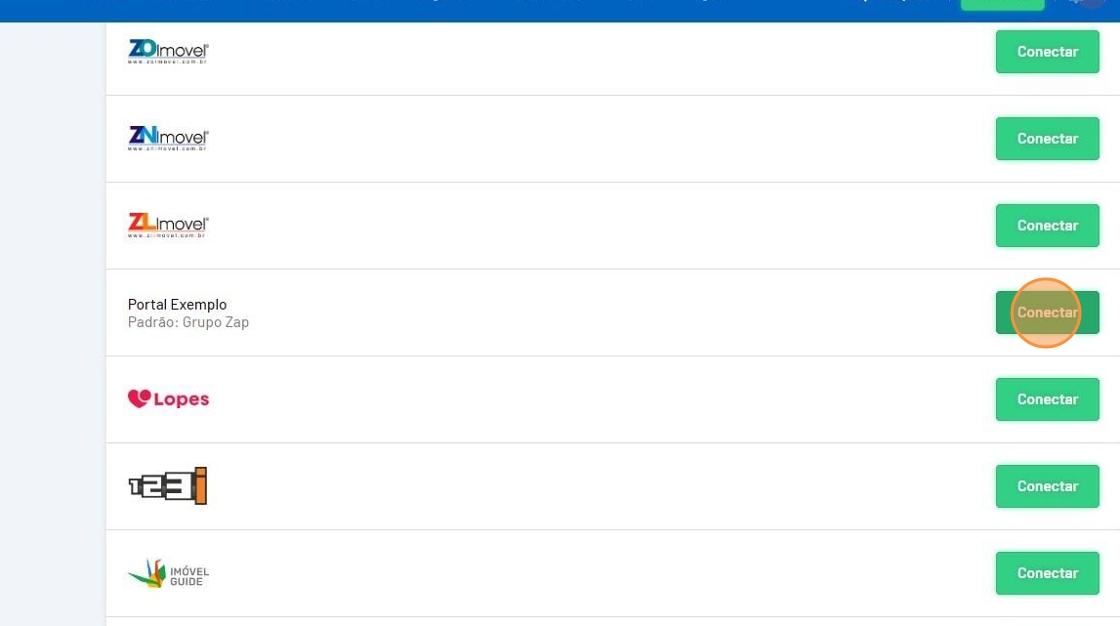 - Vá até o portal que deseja integrar e clique em "Conectar".