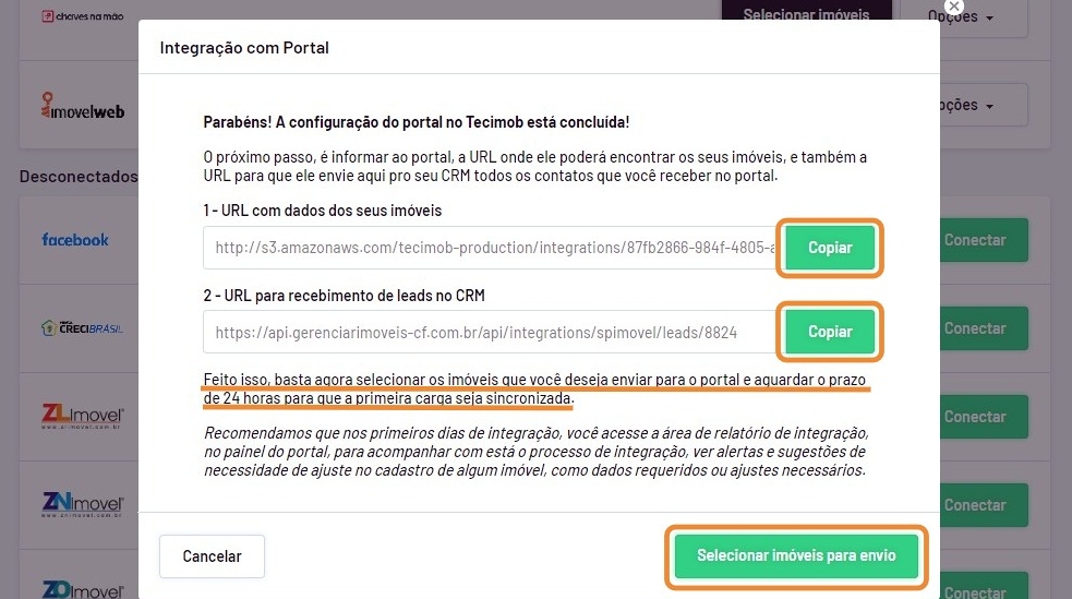 Para integrar com portal imobiliário no sistema do Tecimob, siga esses passos: