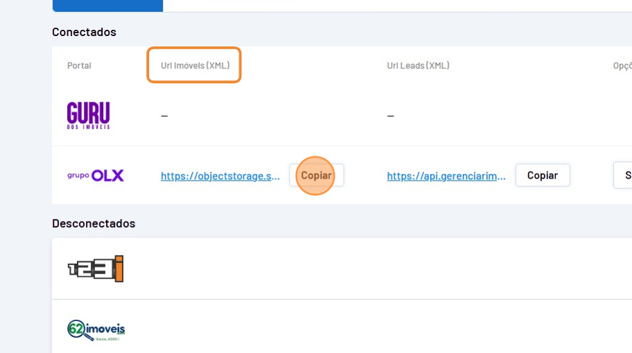 - Vá até o Portal desejado, clique em "Copiar" a URL de imóveis.