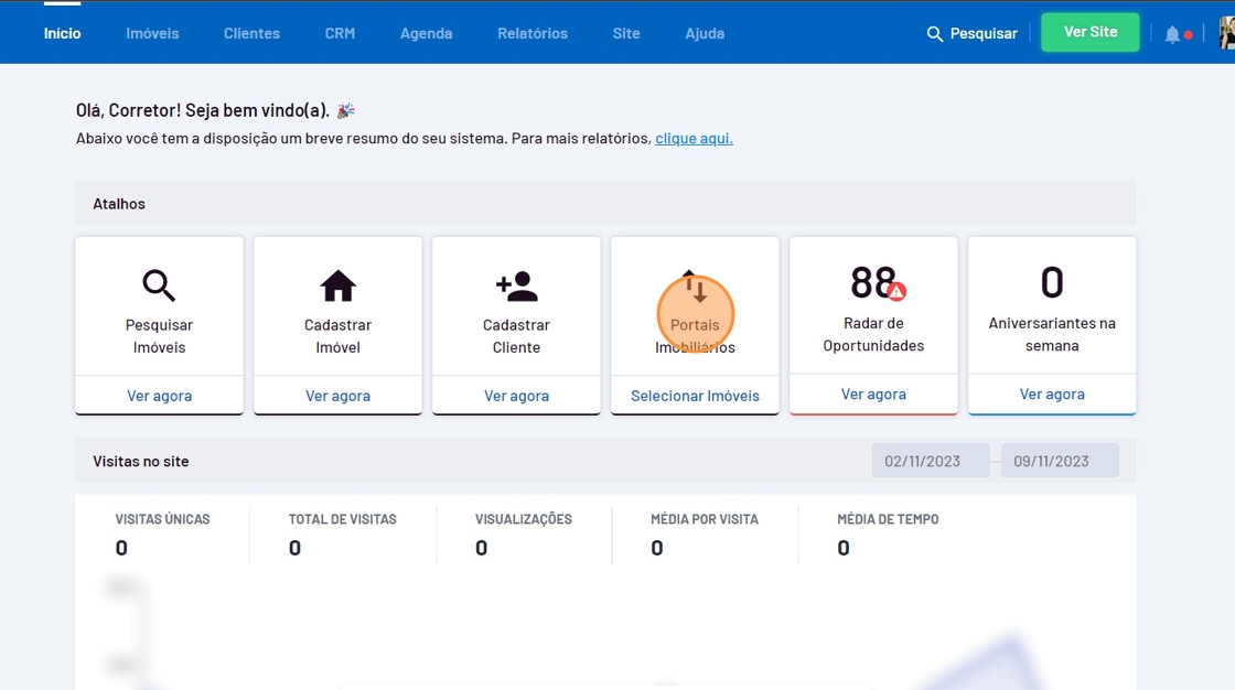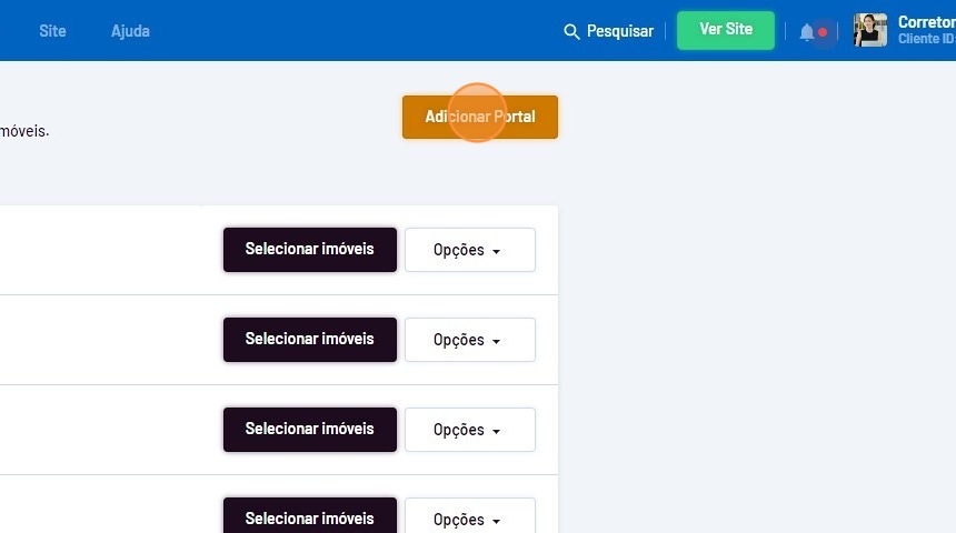 - Na página inicial do sistema, clique em "Portais Imobiliários".
