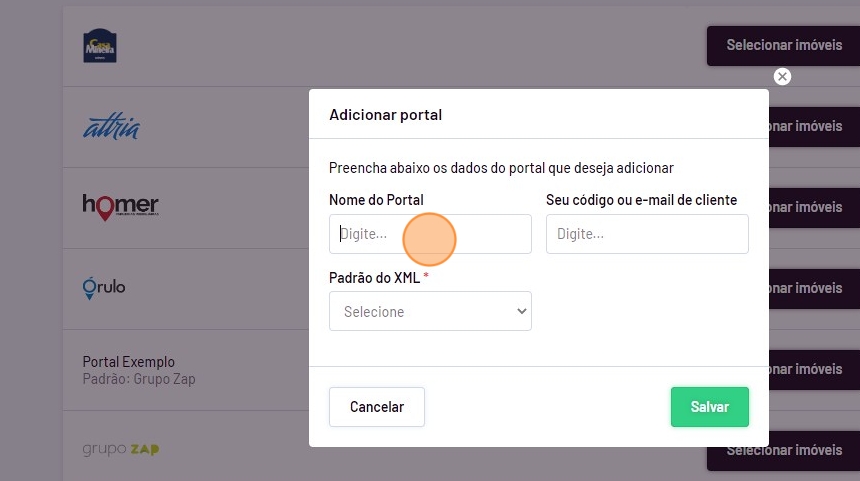 Para adicionar o portal imobiliário no sistema do Tecimob, siga esses passos: