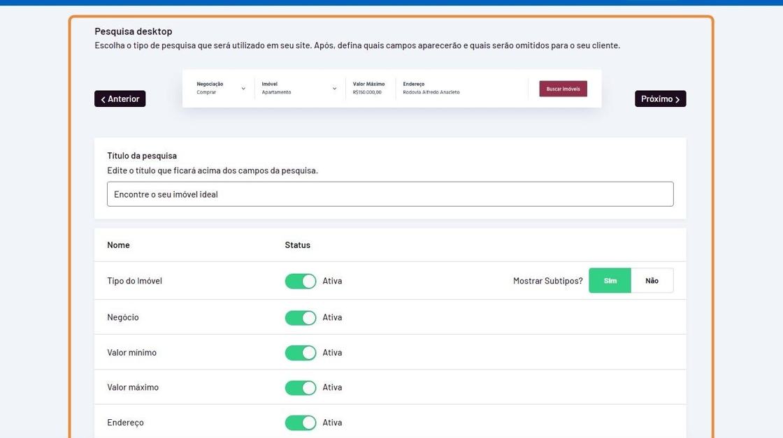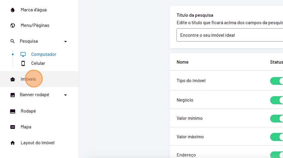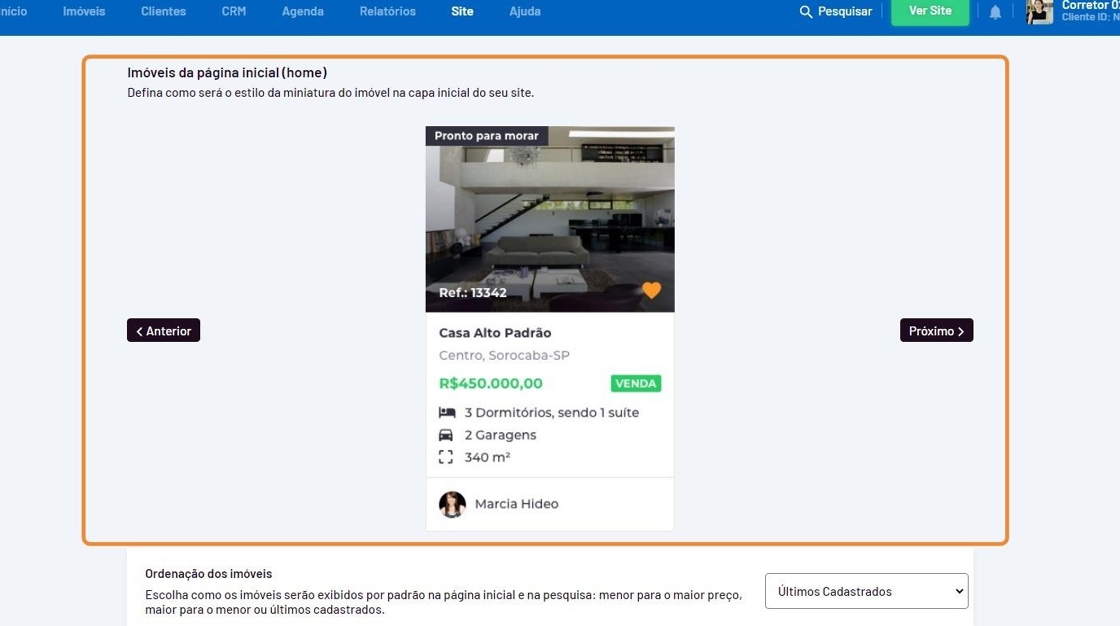 - Defina o modelo de layout da miniatura do imóvel em seu site e suas configurações.
