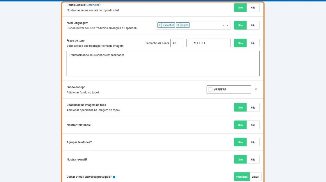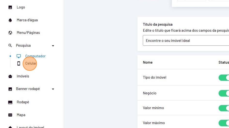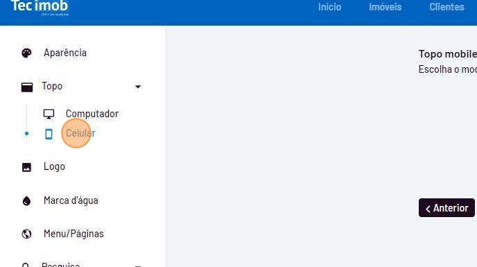 - Clique em "Celular" para alterar o topo do seu site na versão do celular, seguindo os mesmos passos da versão computador.