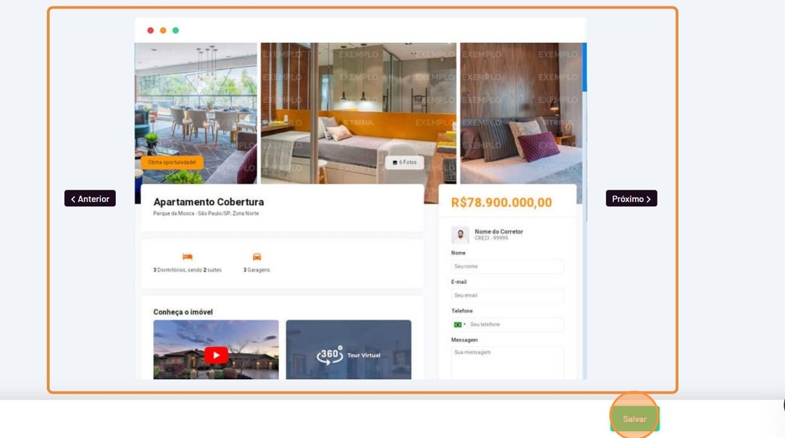 - Defina o modelo de layout da página de detalhes do imóvel e ao finalizar clique em "Salvar".