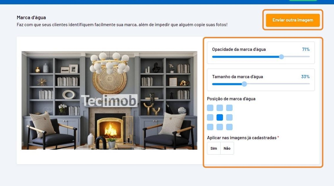 Caso queira aplicar outra marca d'água, clique em "Enviar outra imagem".