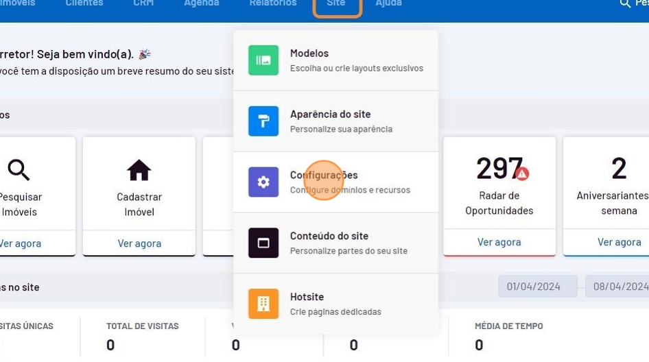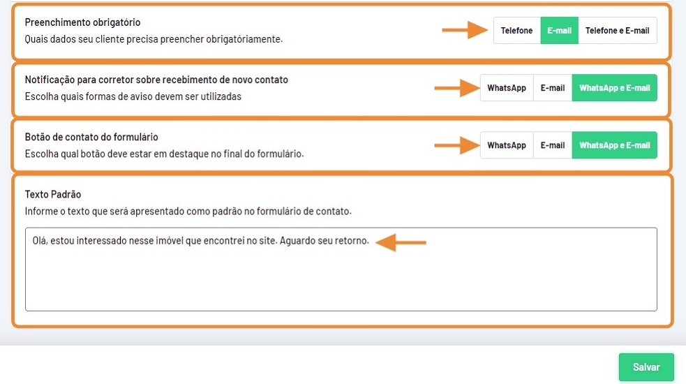 Defina por qual local o corretor receberá o alerta de contato recebido.