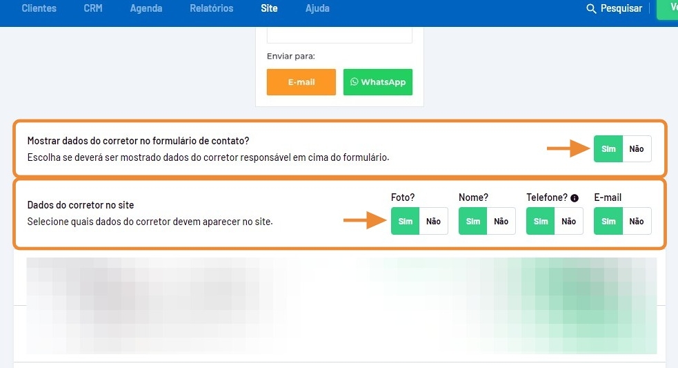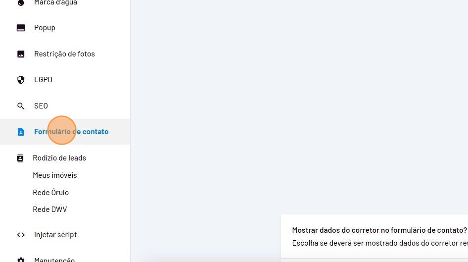 - Defina se serão mostrados os dados do corretor no formulário e quais dados ficarão visíveis para o seu cliente.