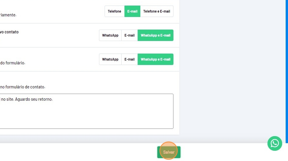 Para definir as configurações do formulário de contato do seu site, siga estes passos: