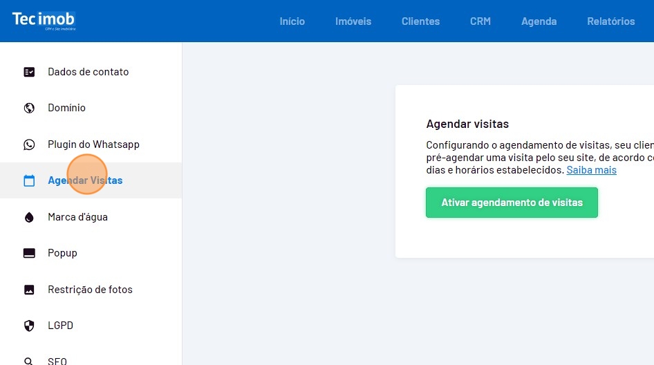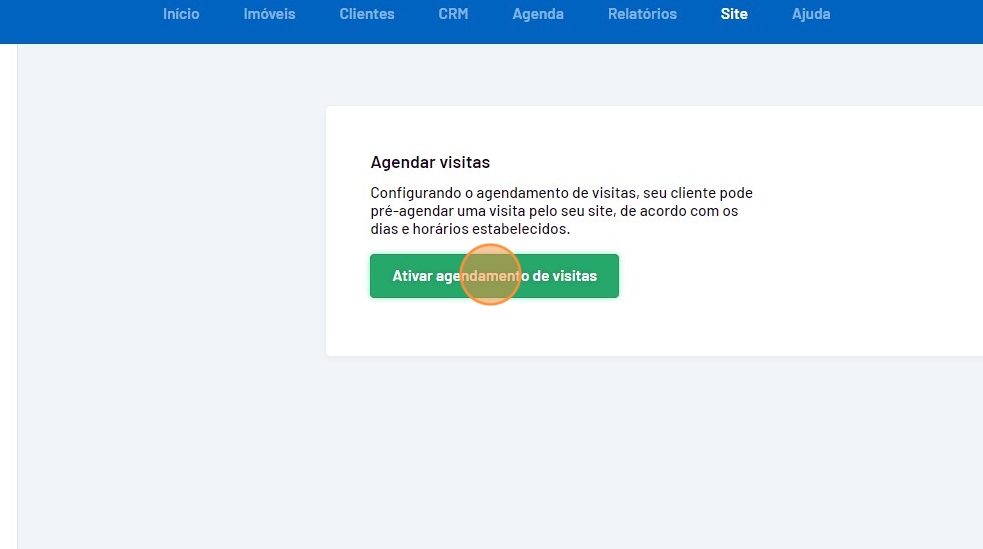 Para ativar o agendamento de visitas em seu site, siga estes passos: