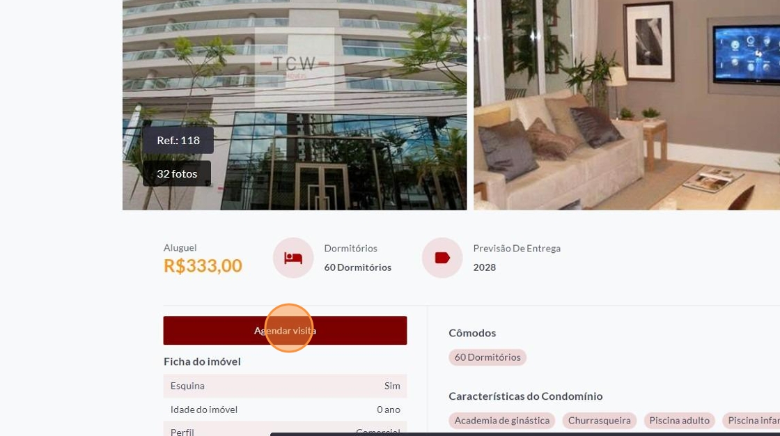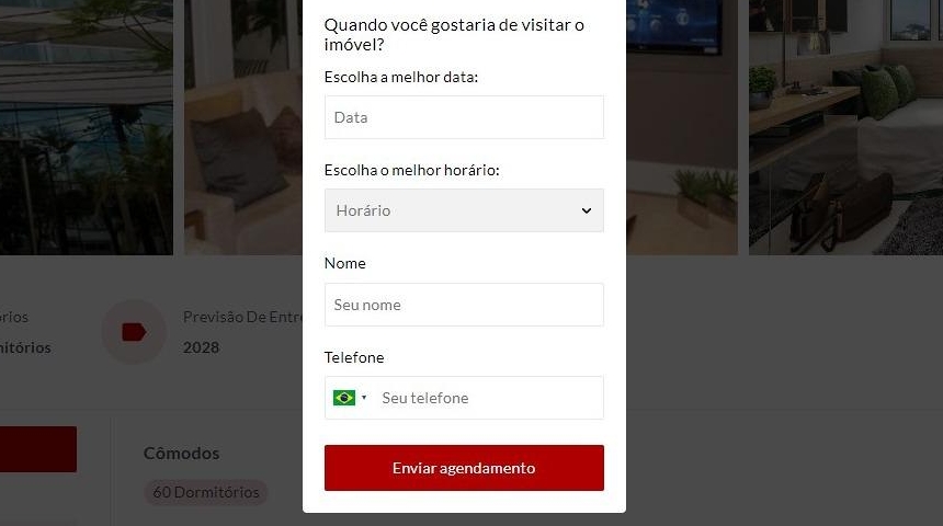 - Ao ativar o agendamento, o clique poderá agendar uma visita direto na ficha do imóvel.