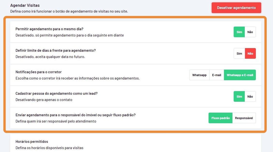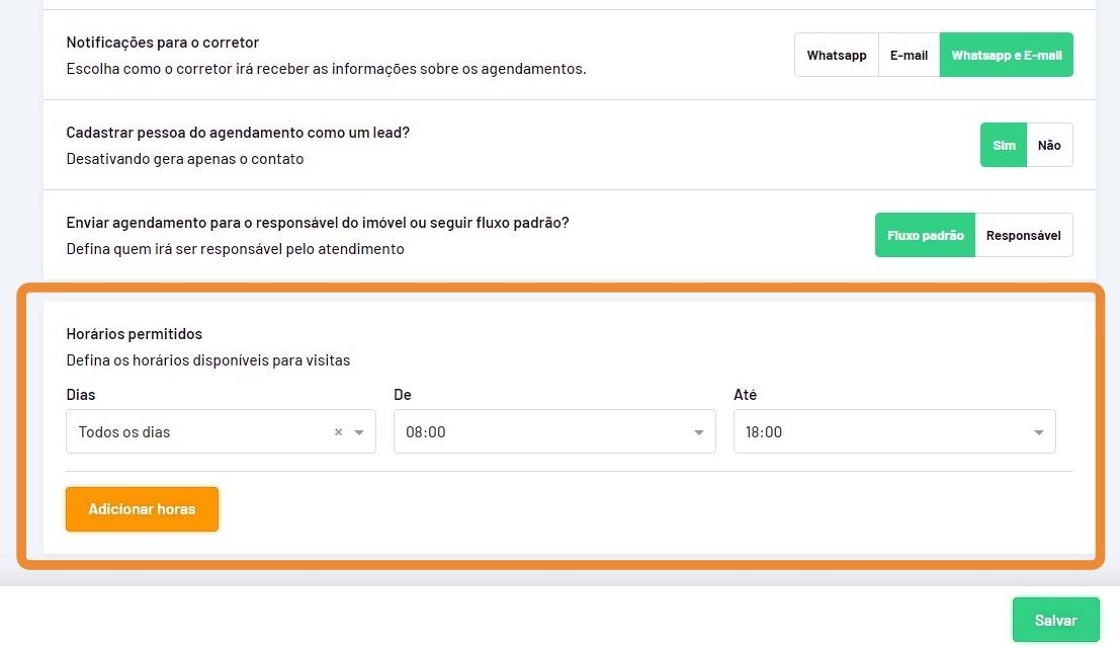 - Defina os dias e horários disponíveis para visitas dos imóveis.