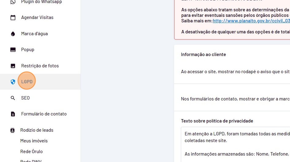 Defina se nos formulários de contato, o cliente deverá ser obrigado a marcar que concorda com a POLÍTICA DE PRIVACIDADE.