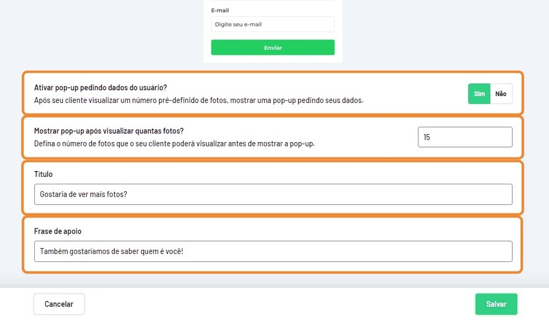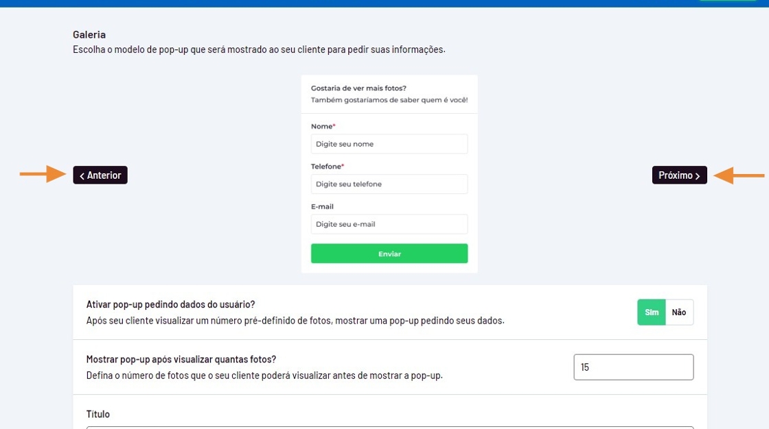Defina o limite de fotos que o cliente poderá visualizar em cada imóvel antes do aparecimento do pop-up.