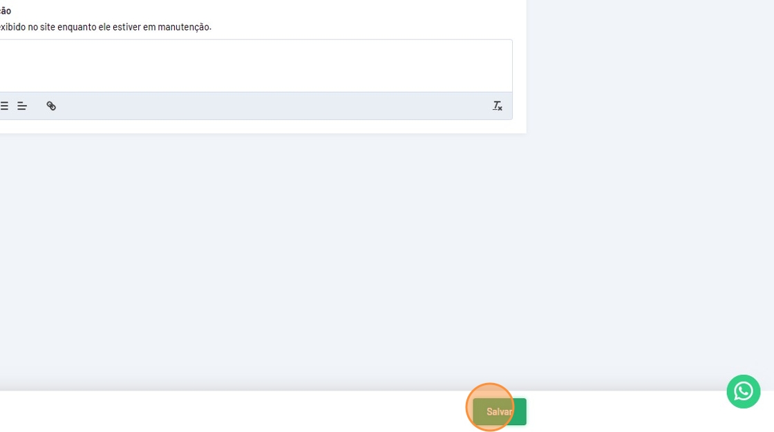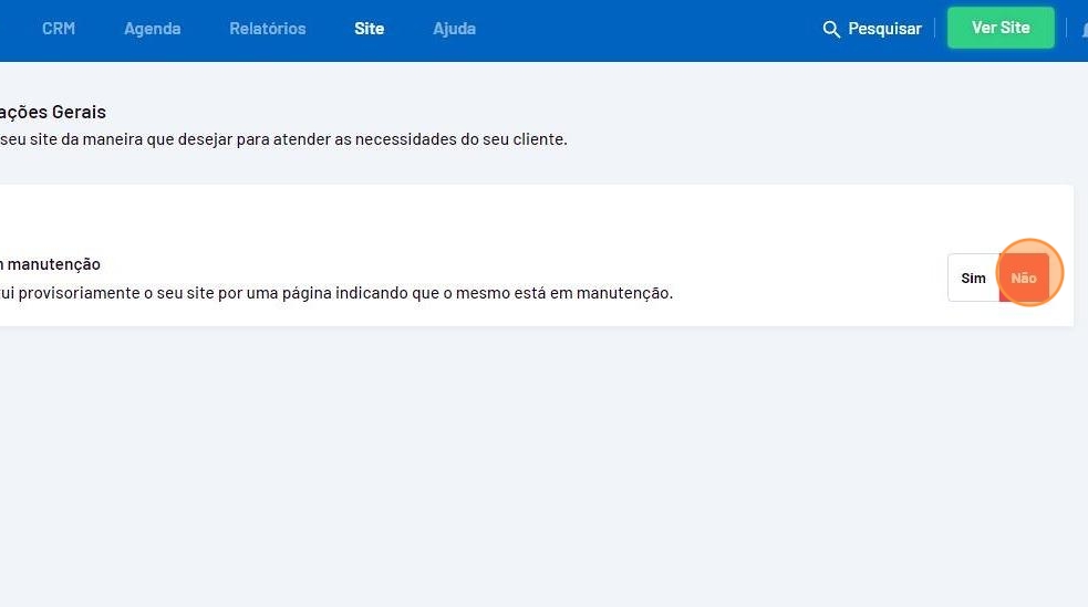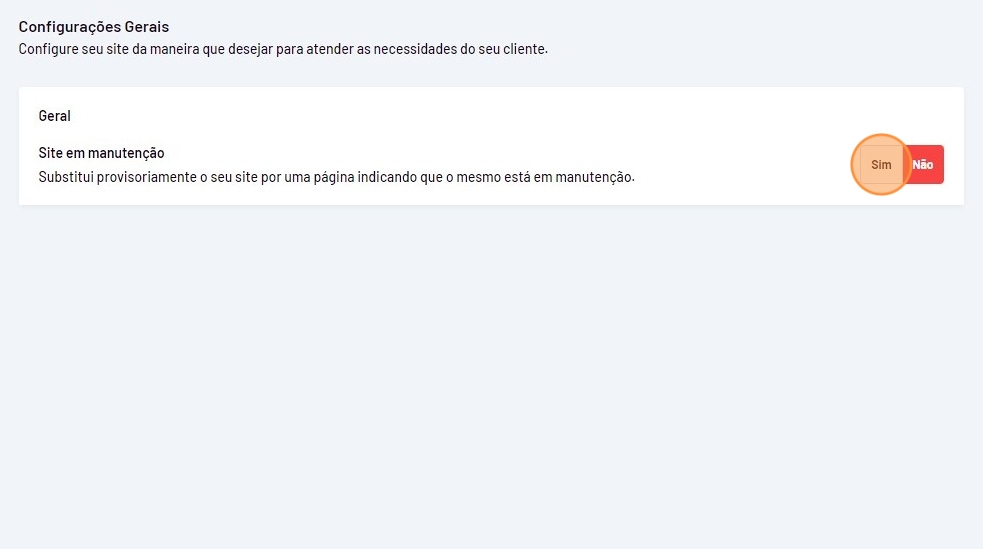 - Selecione a opção "Sim" para deixar o site em manutenção