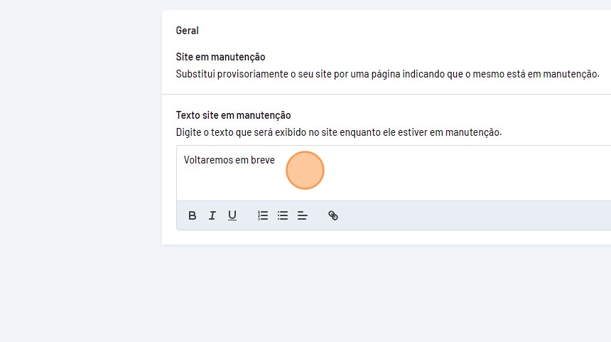 - Informe o texto que será exibido no site, por ex: "Voltaremos em breve".