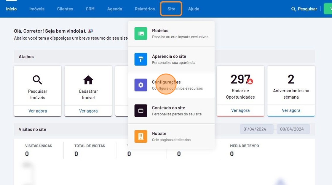 Para editar os dados de contato no sistema do Tecimob, siga estes passos: