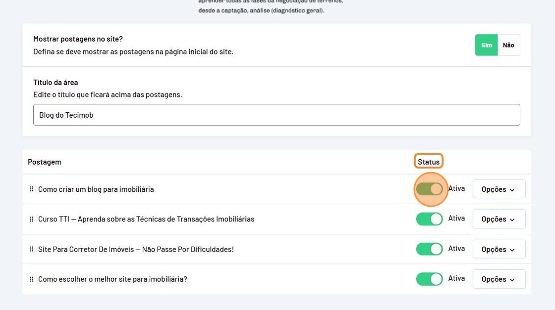 - Na coluna "Status", remova a seleção de "Ativo" para "Inativo".