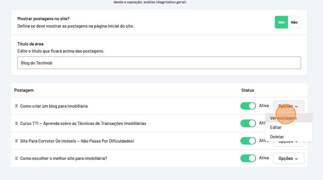 Para criar postagem, ocultar postagem e criar um Menu com postagem em seu site, siga o tutorial abaixo: