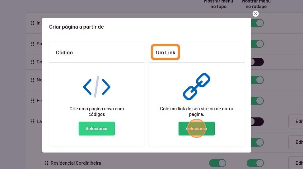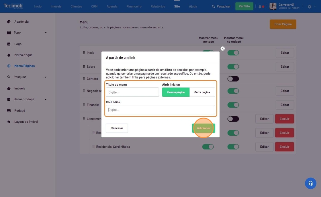 - Digite o "Título do menu" e "Cole o link" da postagem.