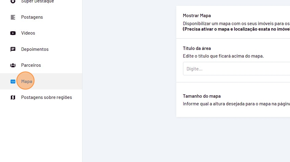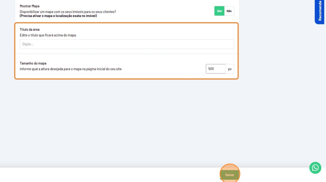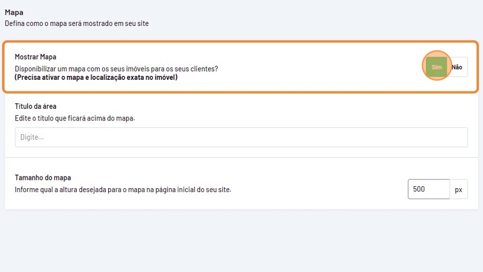 - Selecione a opção "Sim" em "Mostrar Mapa" para ativar o mapa em seu site.