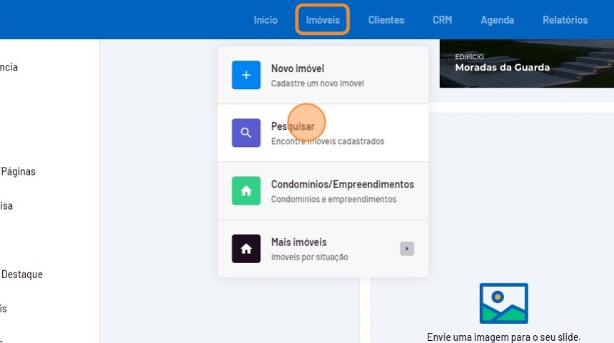 - Passe o mouse sobre o menu "Imóveis" e clique em "Pesquisar".