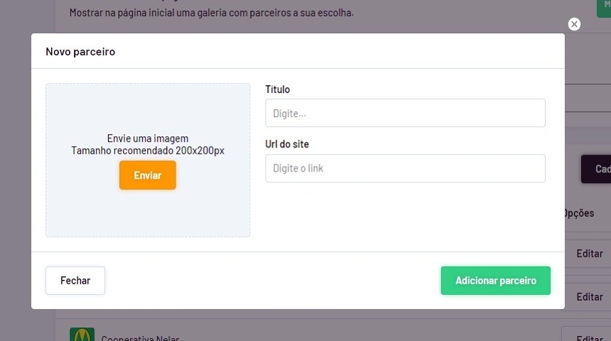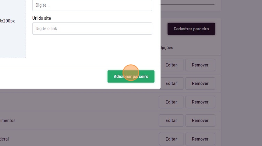 - Preencha as informações e envie uma foto para ilustrar o parceiro.