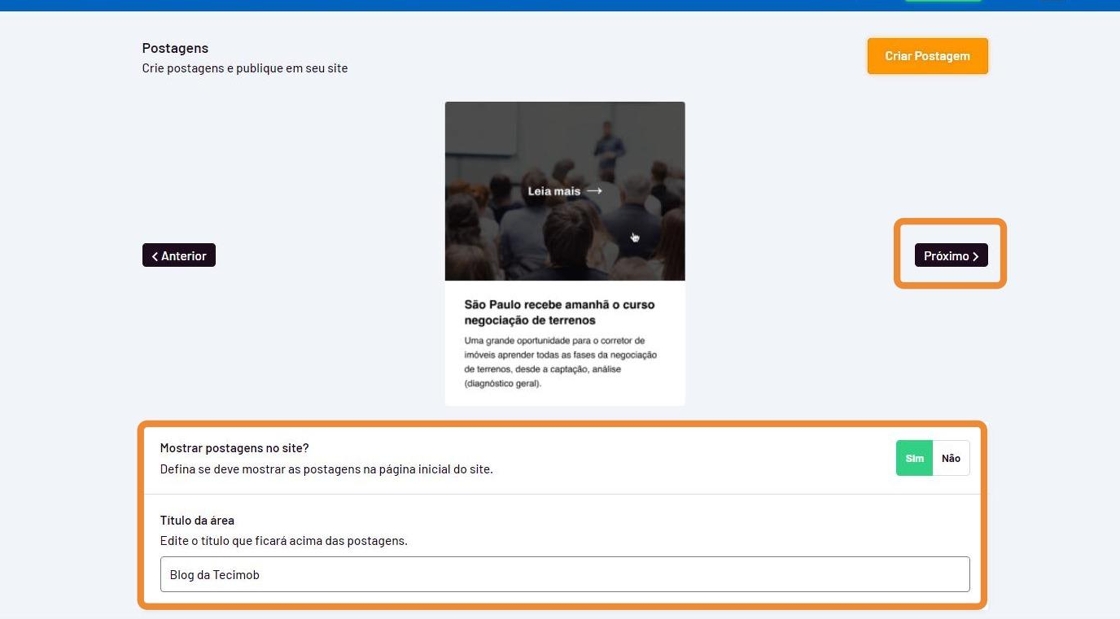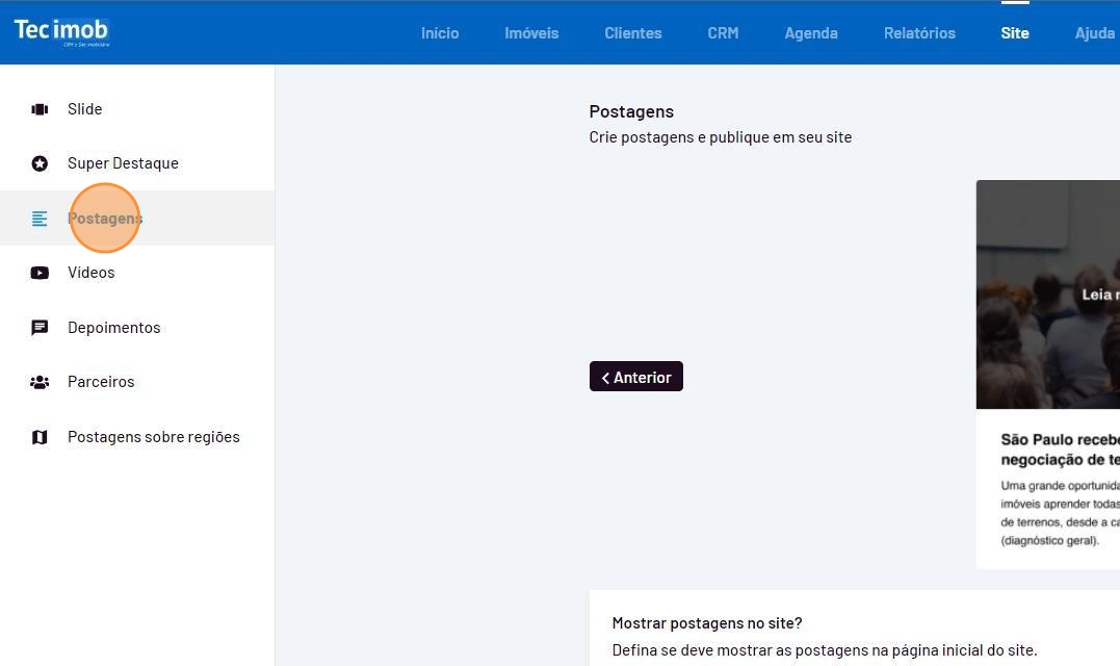 Para gerenciar as postagens no sistema do Tecimob, siga estes passos: