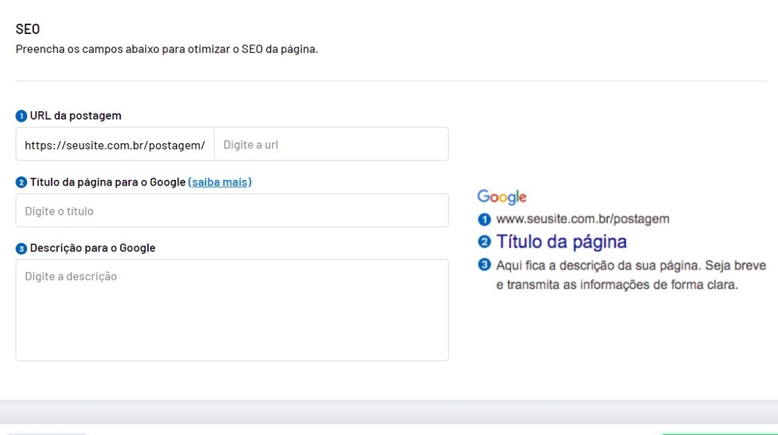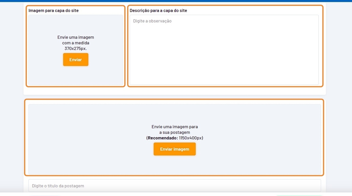- Envia uma imagem para a capa, faça uma descrição para a capa do site e envie uma imagem para sua postagem.