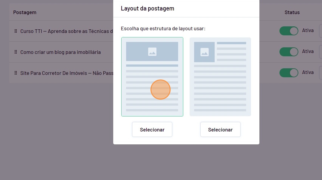 - Escolha a estrutura visual da postagem que deseja utilizar.