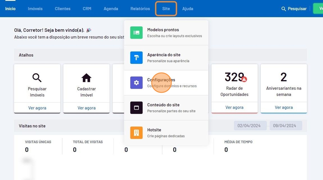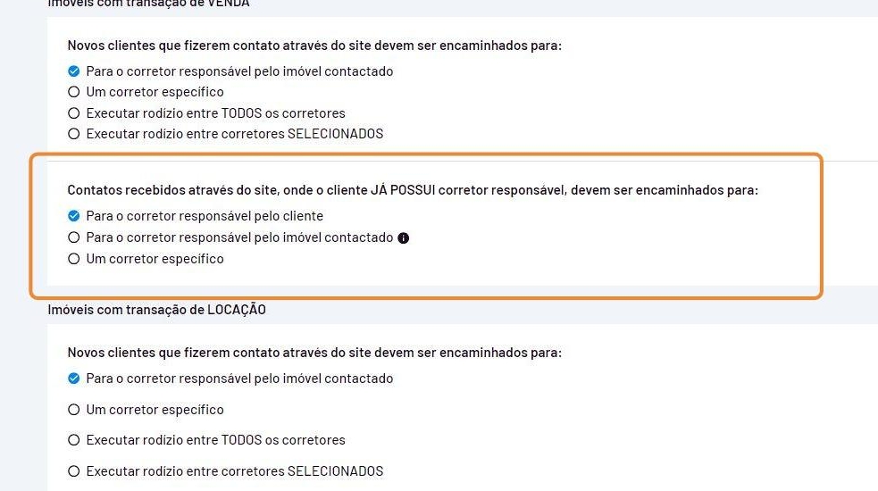 - Defina as configurações de clientes que JÁ POSSUI um corretor responsável.