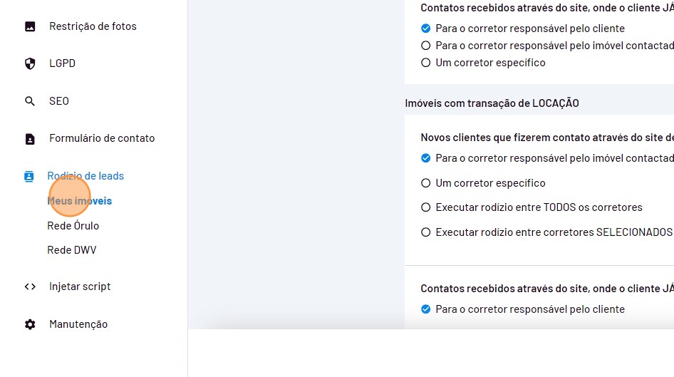 Para configurar rodízio de leads para atendimento no sistema do Tecimob, siga esses passos: