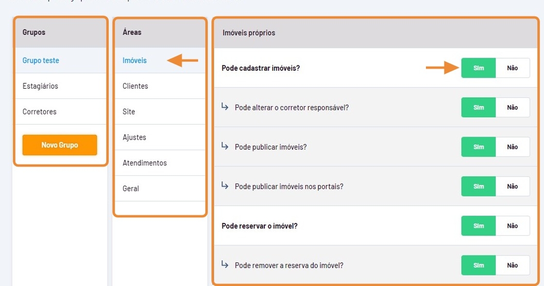 Para gerenciar permissões no sistema do Tecimob, siga estes passos: