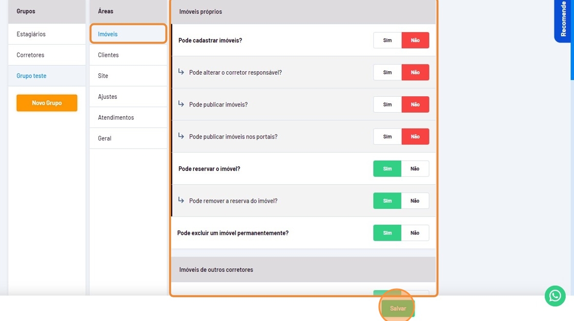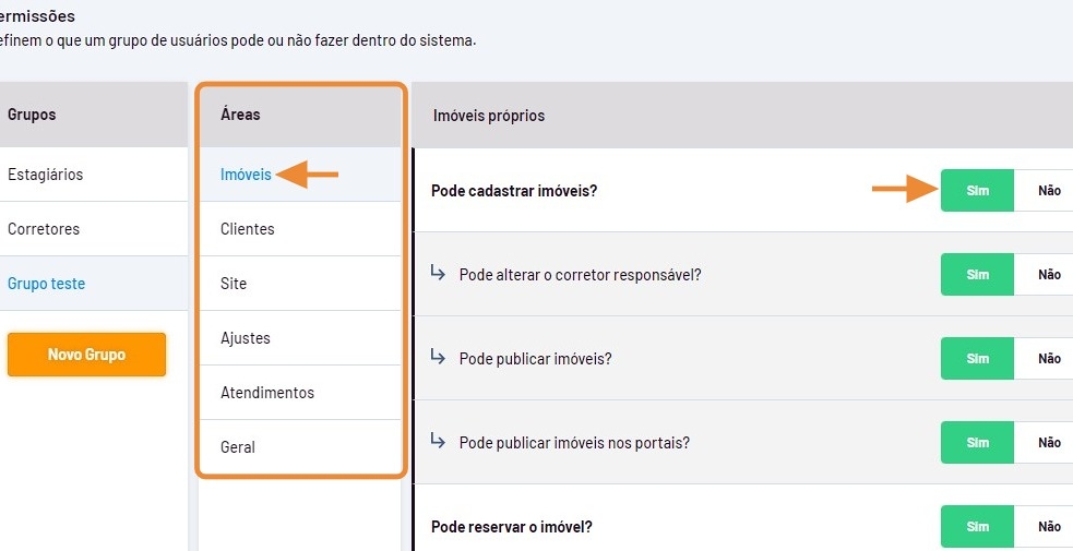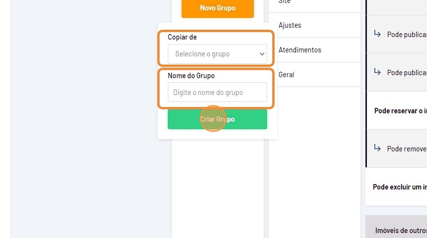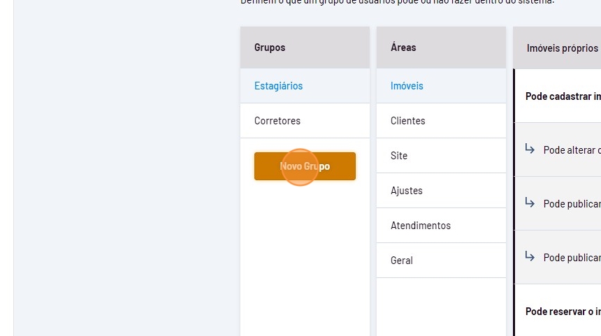 Para criar grupo de permissões no sistema do Tecimob, siga estes passos: