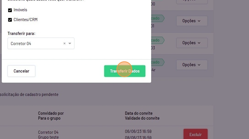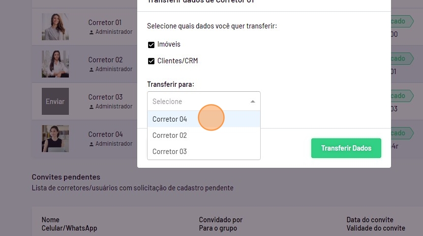 - E selecione para qual corretor será transferido.