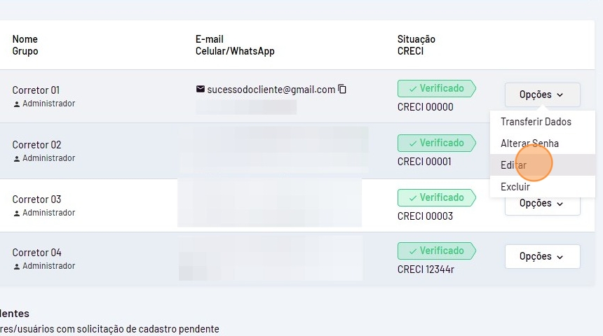 - Passe o mouse sobre a engrenagem no canto superior direito da sua tela e clique em "Corretores/Usuários".